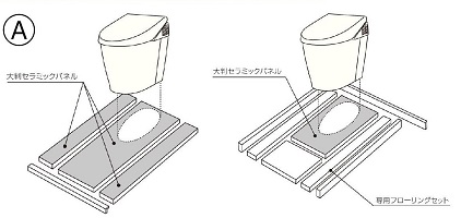 大型のセラミックパネルを床に設置。