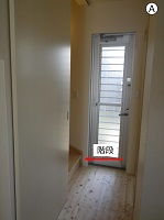 写っているのは対面の2階への階段です。