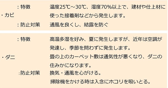 カビやダニはアレルギー等健康を害する原因のひとつです。