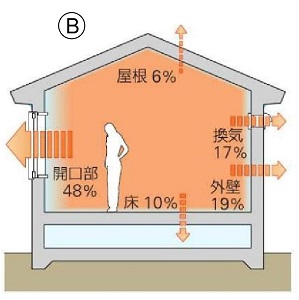 冬の暖房時のロス熱の割合